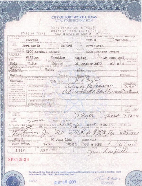 Roy Franklin Taylor was born in Johnson County, Texas, between Joshua and Cleburne, on July 22, 1900. His parents were William Franklin Taylor and Mary Elizabeth Bullard, who had married in Mills County on August 25, 1895.